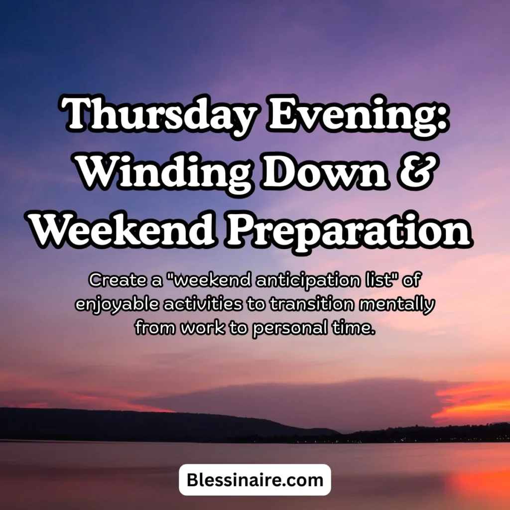 - Create “transition rituals” that help you mentally shift from work to weekend, enhancing both Thursday productivity and weekend relaxation.